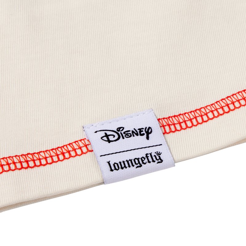 Feel like you've been transported into one of your favorite Disney tales when you wear this tee! You'll find an illustration of Snow White on the front, her silhouette sits within an apple. Flowers bloom around her. The words "Just One Bite" are written at the top. Red trim on the sleeves, collar, and hem brings the whole look together.