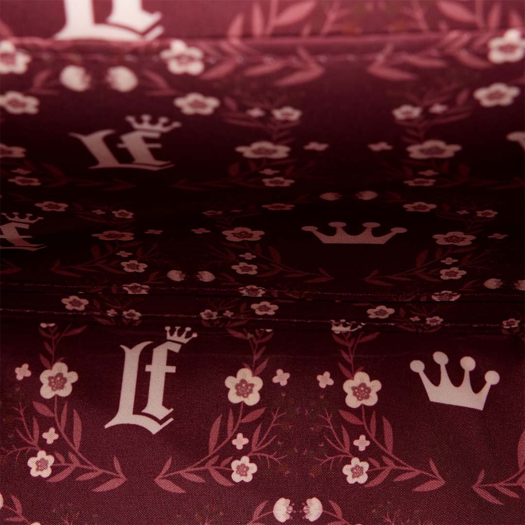 This crossbody bag features red and pink floral embroidery against a cream background. You'll find metallic beads amongst the embroidery to elevate the look. In the center of the top flap, you'll find a molded metal charm of a rose! A braided top handle adds dimension to the silhouette.