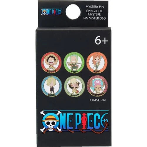 Gear up with your favorite members of the Straw Hat Pirates and these One Piece Chibi Mystery Box Pins! Features 6 possible pin designs that include Luffy, Zori, Nami, Sanji and Usopp - plus a glitter chase variant of Chopper! For ages 6 and up.