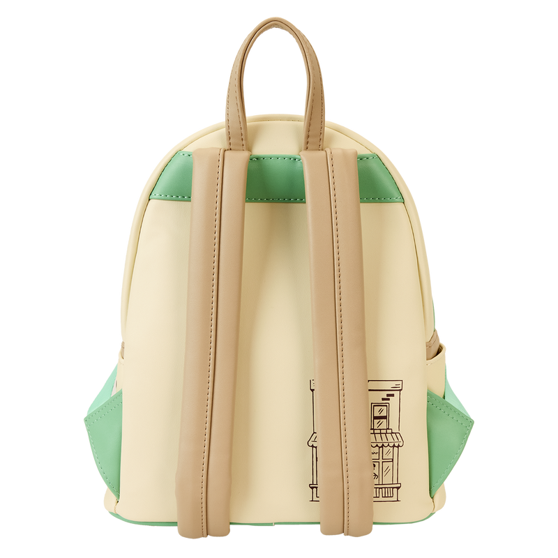 Perk up your day! This Central Perk coffeehouse mini backpack is a fashionably fun way to take a favorite fandom on the go. It’s even coffee-scented! The front pocket resembles a coffee cup, which extends forward with a rounded cup-like shape on the bottom. On the top, the smooth surface takes on a creamy coffee color, and the Central Perk applique logo appears on the front. Just behind it, you’ll get an inside view of the coffeehouse, complete with the couch from the Friendsset. Pack your daily essentials, grab your bestie, and toast to new adventures.